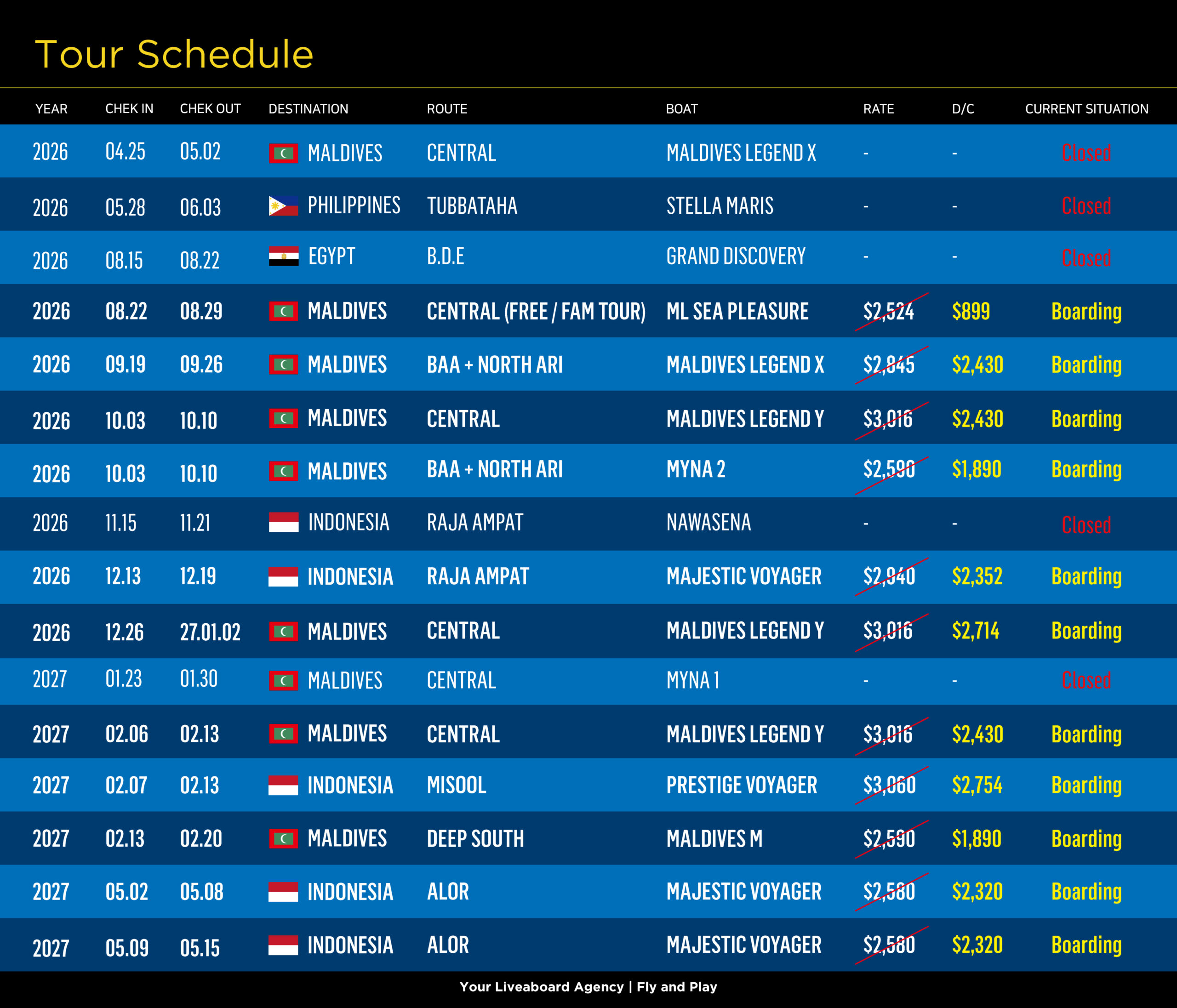 다양한 리브어보드 투어가 준비 되어있습니다.